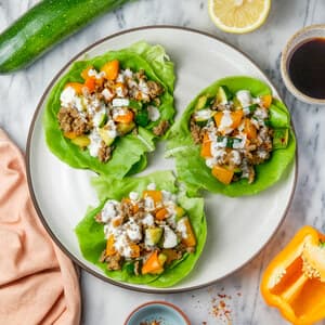 Balsamic Sausage Lettuce Wraps with Zucchini, Bell Pepper & Lemon Mayo